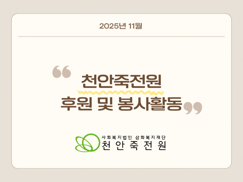 [11월] 후원 자원봉사 페이지 정보 작성자 운영자 작성일25-12-02 11:13 조회45회 댓글0건 관련링크 목록 본문 2025년 11월 후원 및 자원봉사입니다.마지막 12월 감기 조심하시고 잘 마무리 하시길 바랍니다.감사합니다. 댓글목록 등록된 댓글이 없습니다. 목록