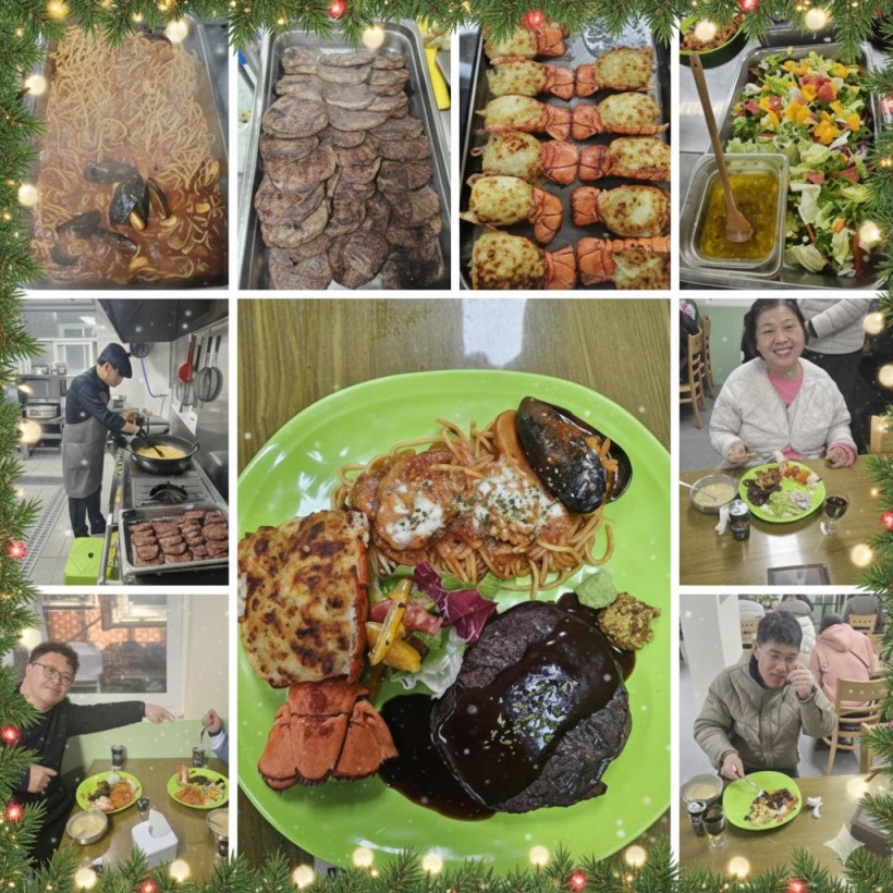 연말 특식 페이지 정보 작성자 김미정 작성일25-12-27 18:30 조회6회 댓글0건 관련링크 목록 본문 연말특식으로 랍스터테일치즈구이와 안심스테이크가 제공 되었습니다.씨제이 쉐프님께서 방문 하셔서 맛있게 음식을 만들어 주셨습니다.맛있는 점심으로 몸과 마음을 재충전하고 천안죽전원 가족들과 직원들 모두 즐거운 점심시간이었습니다. 댓글목록 등록된 댓글이 없습니다. 목록
