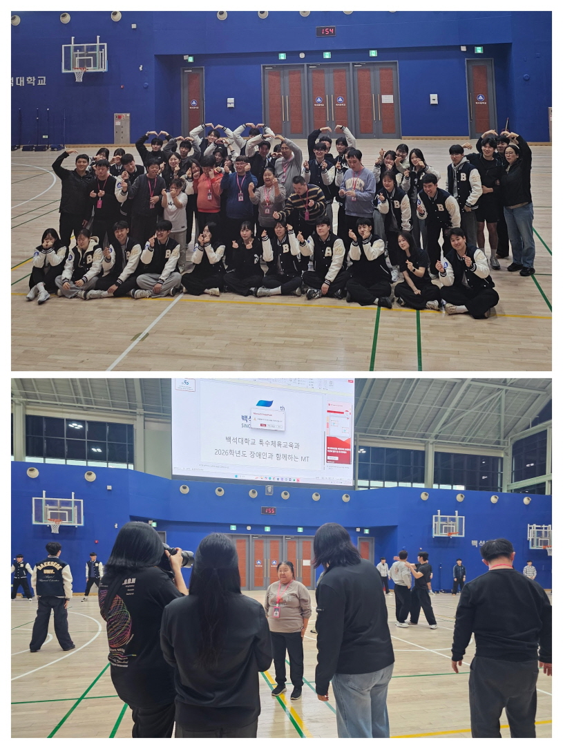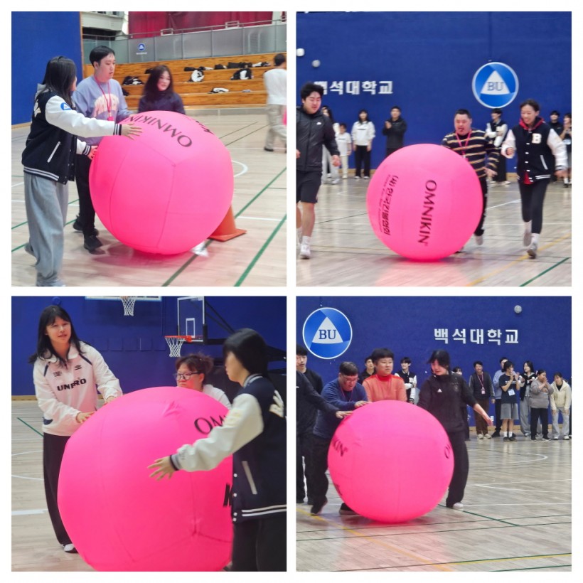 봄기운이 살며시 스며든 3월 마지막주, 우리 센터에서는 백석대학교 특수체육교육과 학생들과 함께하는 뉴스포츠 프로그램의 첫 만남이 시작되었습니다. 1:1로 짝을 이루어 진행된 이번 활동에서는 대형 짐볼을 활용한 다양한 체육활동이 펼쳐졌고, 서로 호흡을 맞추며 웃음과 응원의 시간이 이어졌습니다.