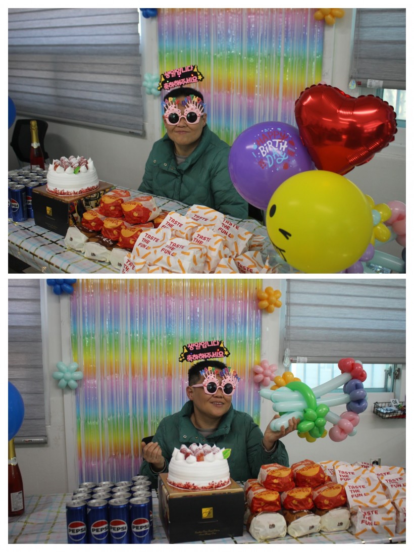 따뜻한 봄기운이 살짝 고개를 내민 3월, 센터에서는 특별한 웃음이 피어나는 생일파티가 열렸습니다. 알록달록 풍선으로 공간을 꾸미며 오늘의 주인공을 맞이할 준비를 했고, 생일파티 주인공의 사진을 모아 만든 생일 축하 영상을 함께 감상하며 지난 순간들을 떠올려 보았습니다.