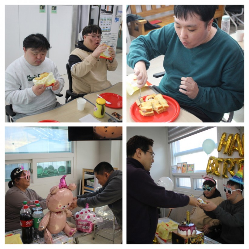 12월의 차가운 공기 속에서도 센터에는 하루 종일 따뜻한 웃음이 가득했습니다. 바로 12월 생일자 3명을 위한 생일파티가 열렸기 때문입니다. 알록달록한 풍선과 다양한 장식품으로 공간을 꾸미자, 평소와는 다른 특별한 분위기가 완성되었고, 생일 주인공들의 얼굴에는 설렘이 가득 담겼습니다.