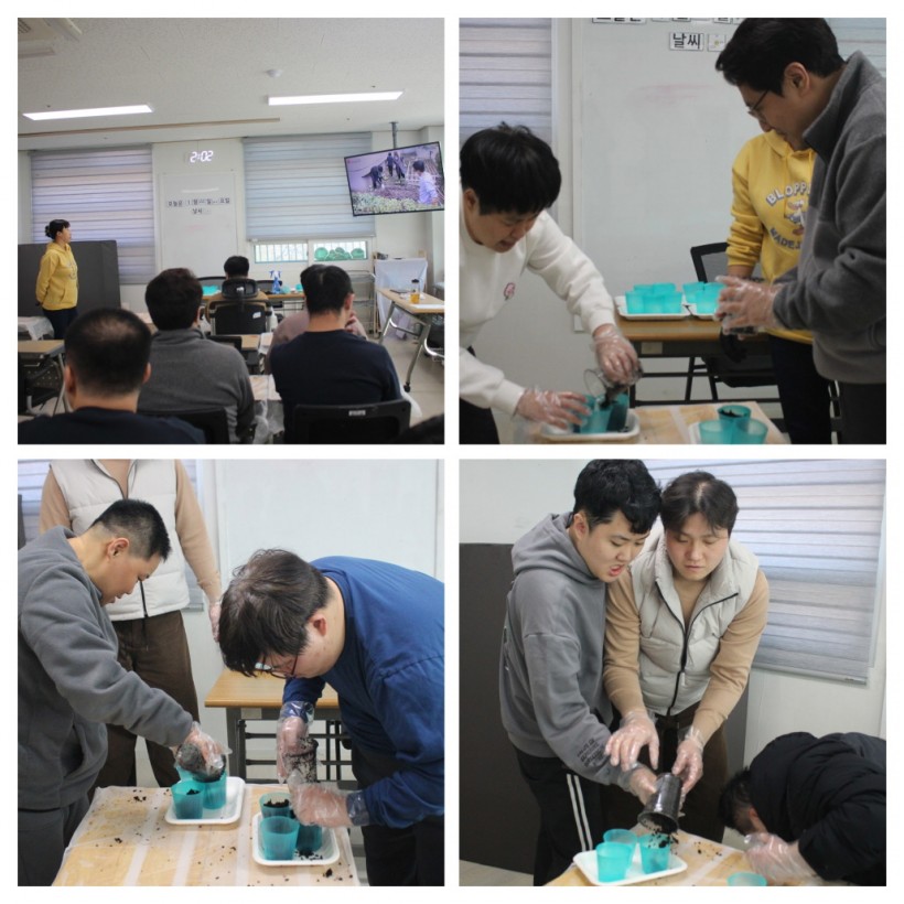 심은 포트는 프로그램실 안 ‘식물 키움 공간’으로 옮겨져, 앞으로 매일 물을 주고 변화를 관찰하며 성장의 시간을 함께할 예정입니다. 씨앗이 싹이 되고, 잎이 자라듯 이용인들의 기다림과 책임감도 함께 자라나길 기대합니다.